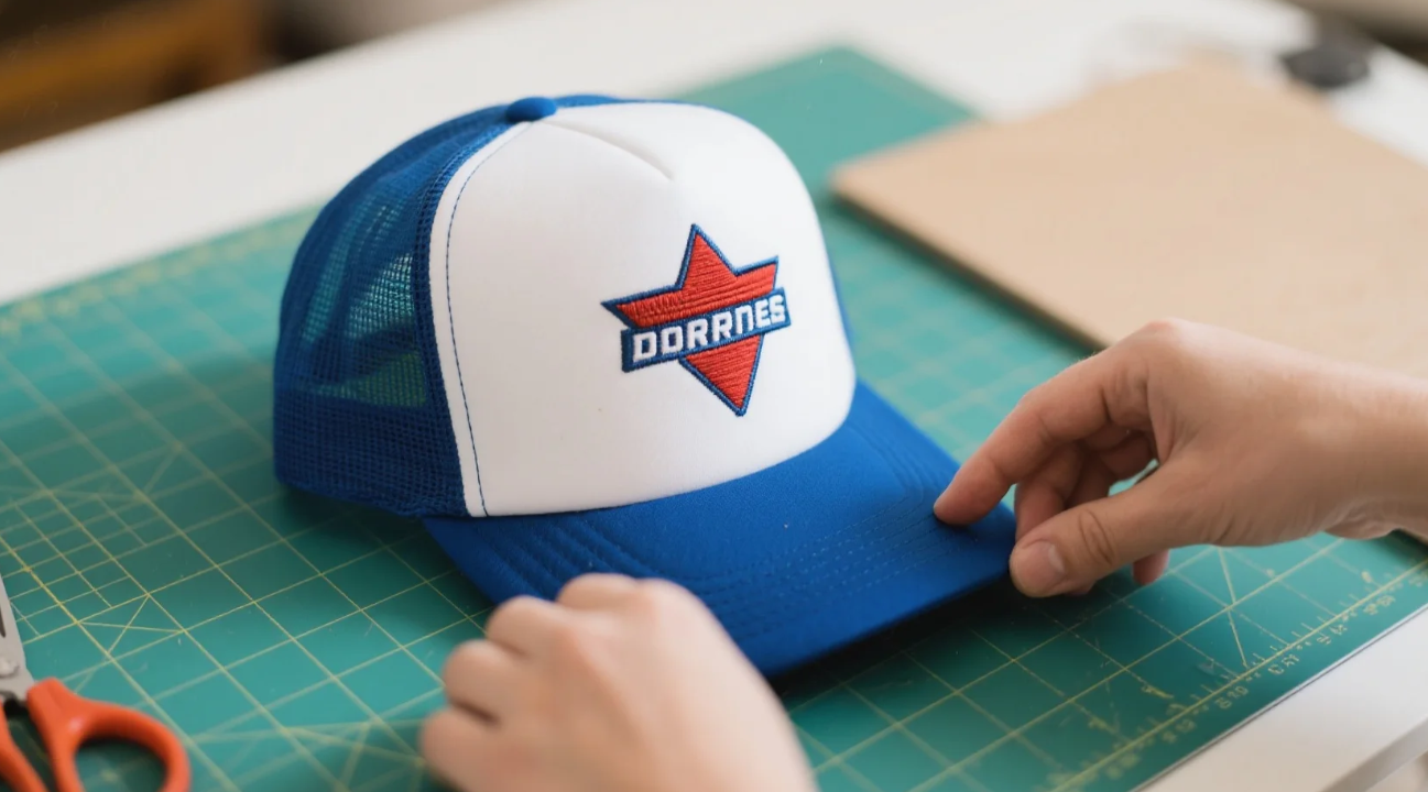 Panel Sewing: The front panel with the customized design is sewn to the mesh back panel. Precise stitching is required to ensure a smooth and even finish. The brim is also attached at this stage, and the seams are reinforced to increase the hat’s durability.